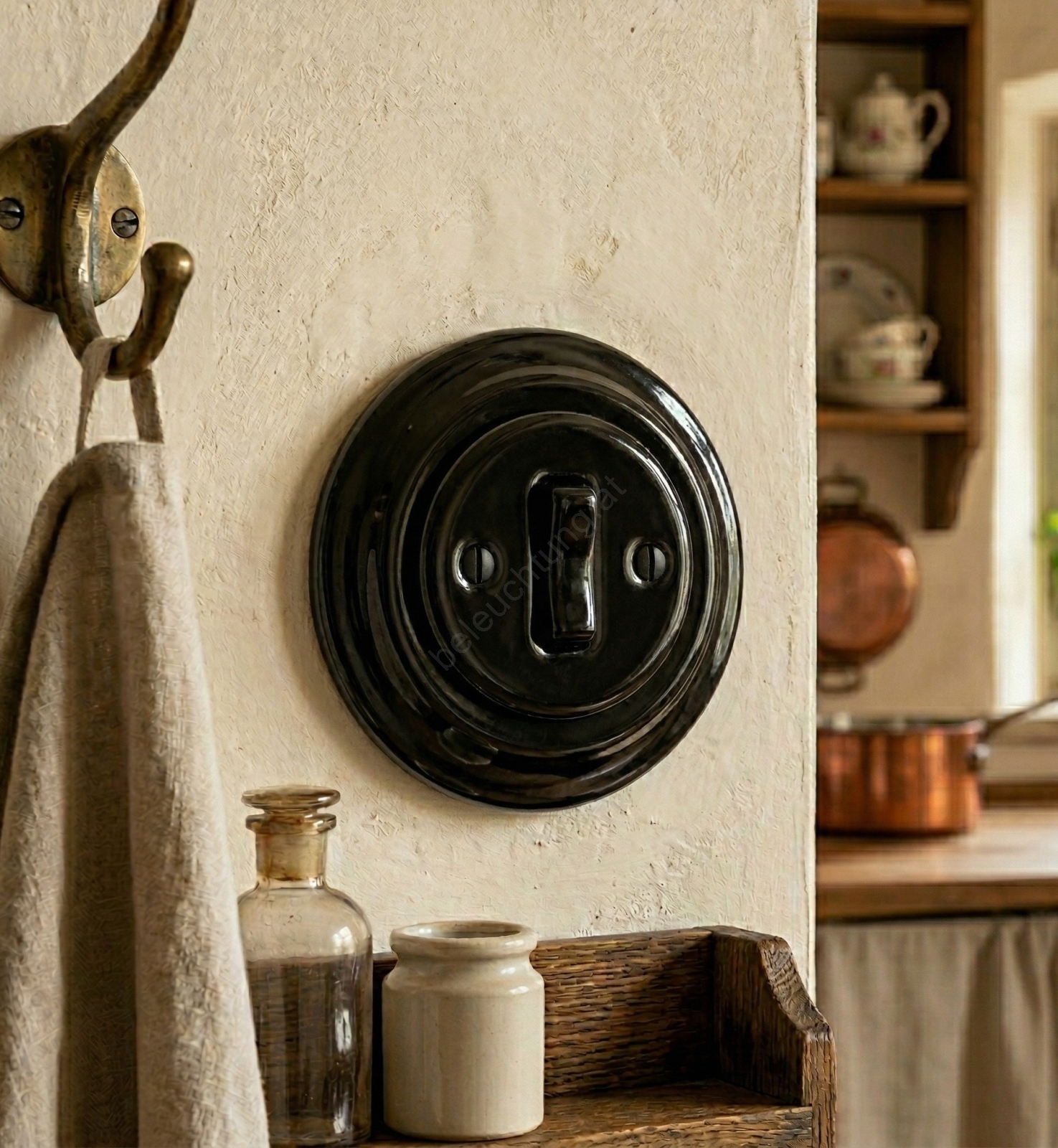 Bohemia-Design - Retro-Porzellan-Einfachschalter mit Rahmen Nr. 6, schwarz