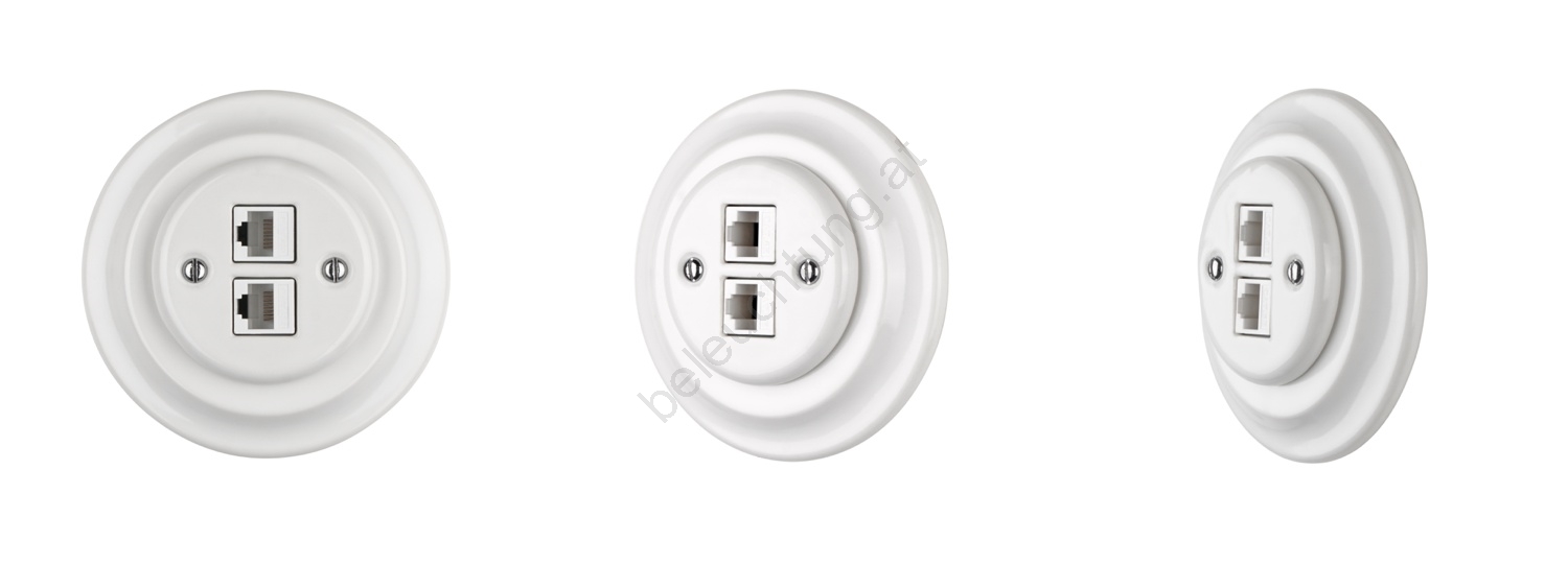 • Porzellan-Ethernetdose, 2x CAT.5E, 2x RJ45.