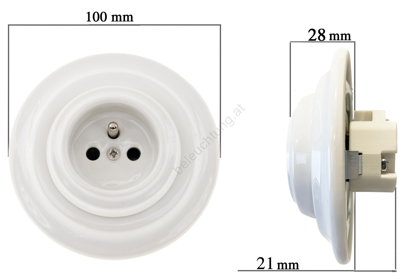 Bohemia-Design - Porzellan-Retro-Steckdose für Hausinstallation mit Rahmen, 250 V/16 A, weiß