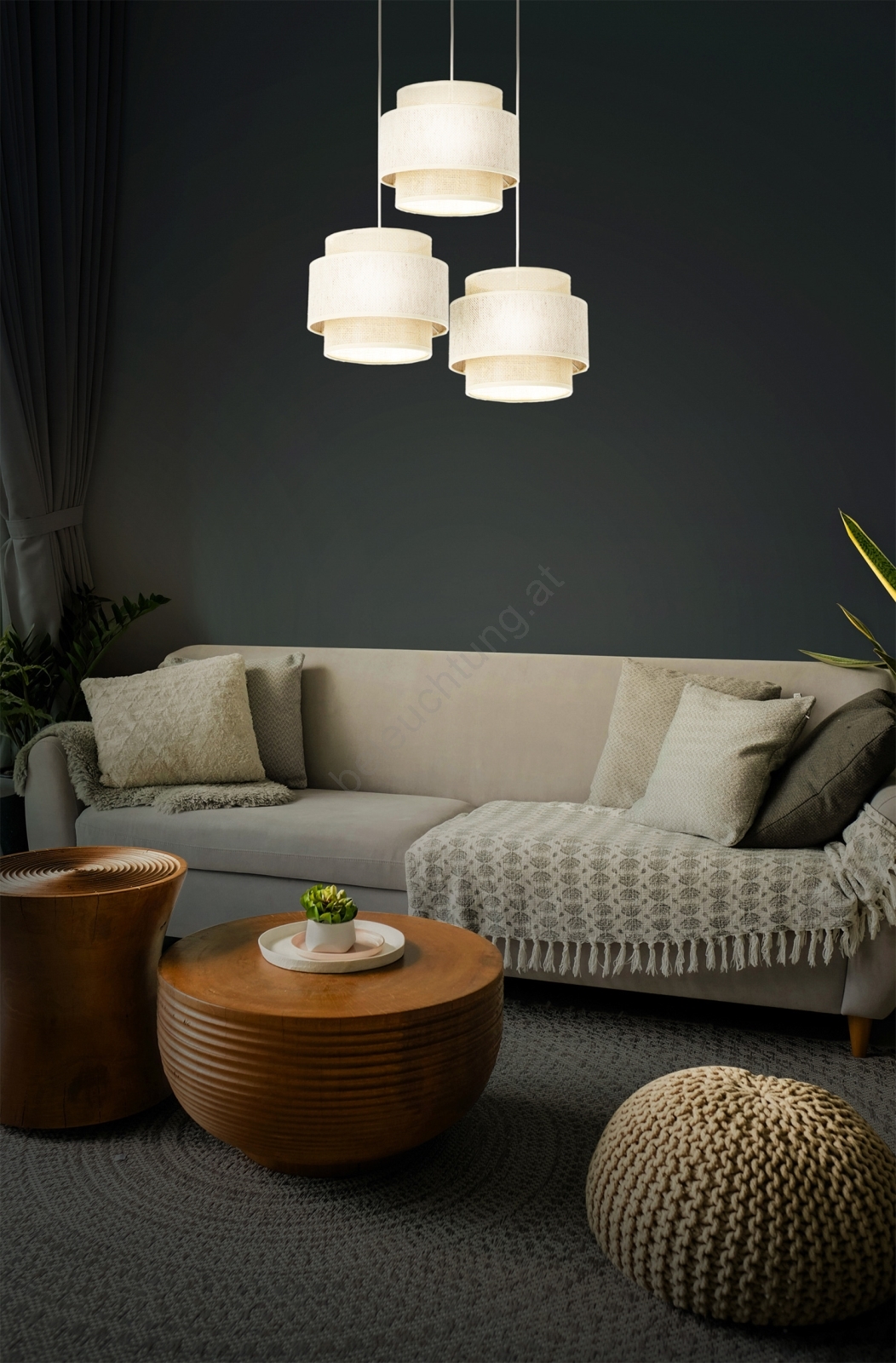 • Pendelleuchte an Kabel BOHO 3xE27/60W/230V weiß/jute