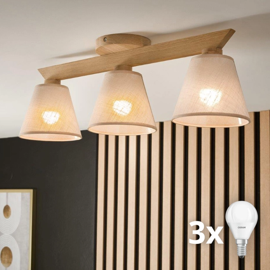 Brilagi - LED Anbauleuchte ANTHONY 3xE14/40W/230V Eiche/beige zeichnet sich durch schönes und funktionales Design aus. Eine Glühbirne mit E14 Sockel ist für die Leuchte geeignet. Hier, können Sie andere Glühlampen zu vorteilhaften Preisen kaufen. Sie erhalten eine attraktive Ergänzung für Ihr Zuhause.