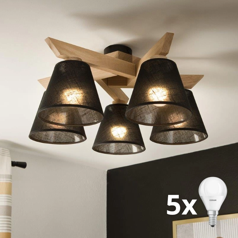 Brilagi - LED Anbauleuchte ANTHONY 5xE14/40W/230V Eiche/schwarz zeichnet sich durch schönes und funktionales Design aus. Eine Glühbirne mit E14 Sockel ist für die Leuchte geeignet. Hier, können Sie andere Glühlampen zu vorteilhaften Preisen kaufen. Sie erhalten eine attraktive Ergänzung für Ihr Zuhause.