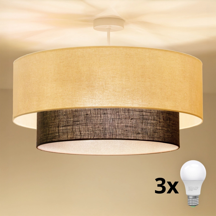 Brilagi - Aufgesetzte LED-Deckenleuchte Boho-Stil 3xE27/15W/230V Ø 60 cm creme/braun