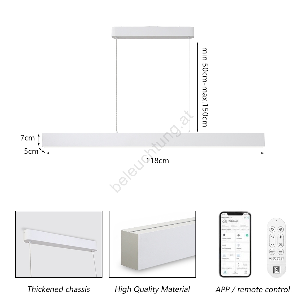 • Dimmbar und Lichtfarbe änderbar per Smartphone oder Fernbedienung.