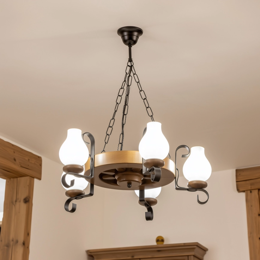 Brilagi - Kronleuchter an Kette ROATA 5xE14/40W/230V Ø 50 cm Buche/Nussbaum zeichnet sich durch schönes und funktionales Design aus. Eine Glühbirne mit E14 Sockel ist für die Leuchte geeignet. Hier, können Sie andere Glühlampen zu vorteilhaften Preisen kaufen. Sie erhalten eine attraktive Ergänzung für Ihr Zuhause.