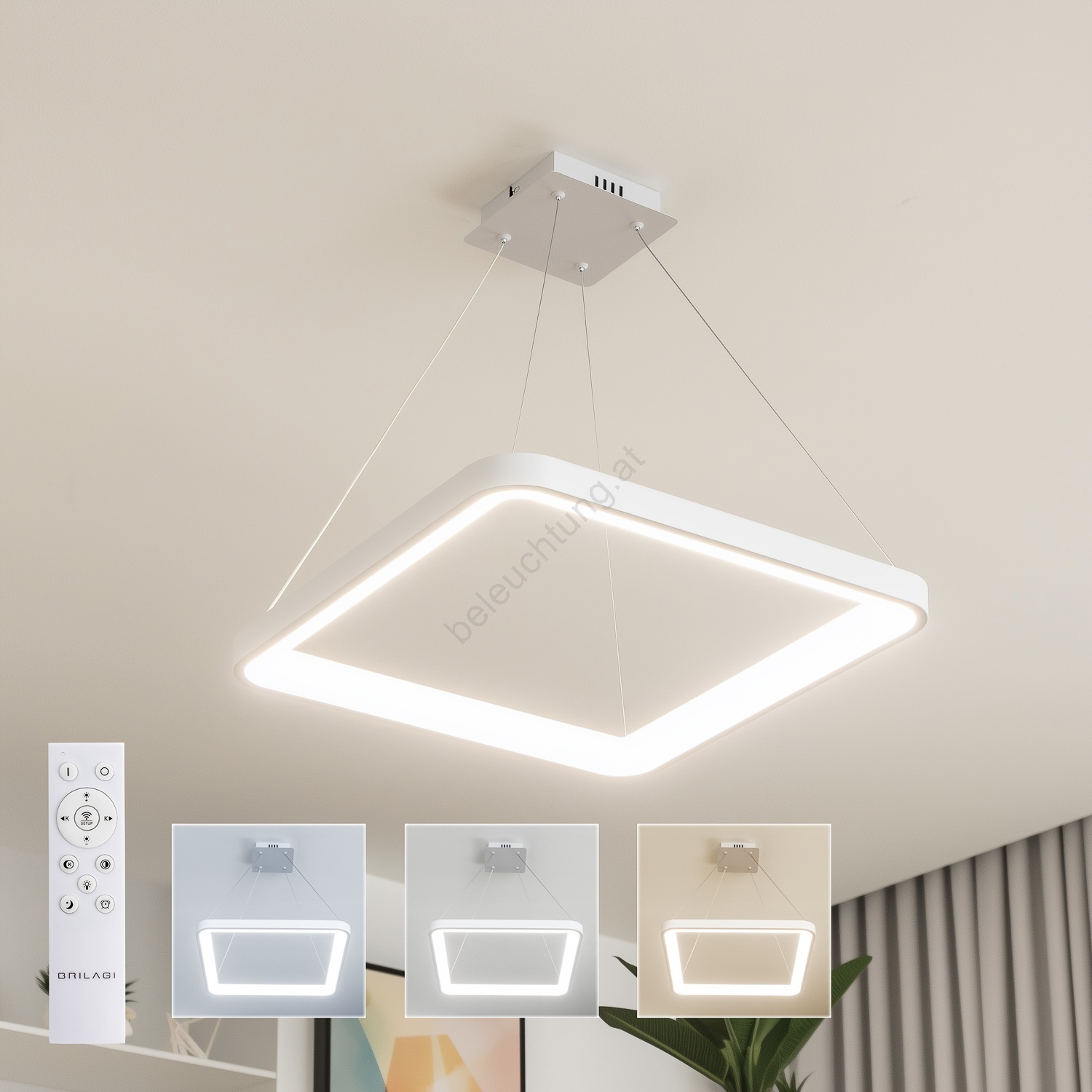 Brilagi - LED-dimmbare Pendelleuchte an Stahlseil FALCON SLIM LED/50W/230V 3000-6500K 50x50 cm weiß + Fernbedienung