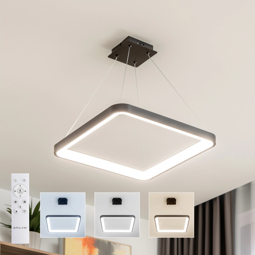 Brilagi - LED-dimmbare Pendelleuchte FALCON SLIM LED/50W/230V 3000-6500K 50x50 cm schwarz + Fernbedienung