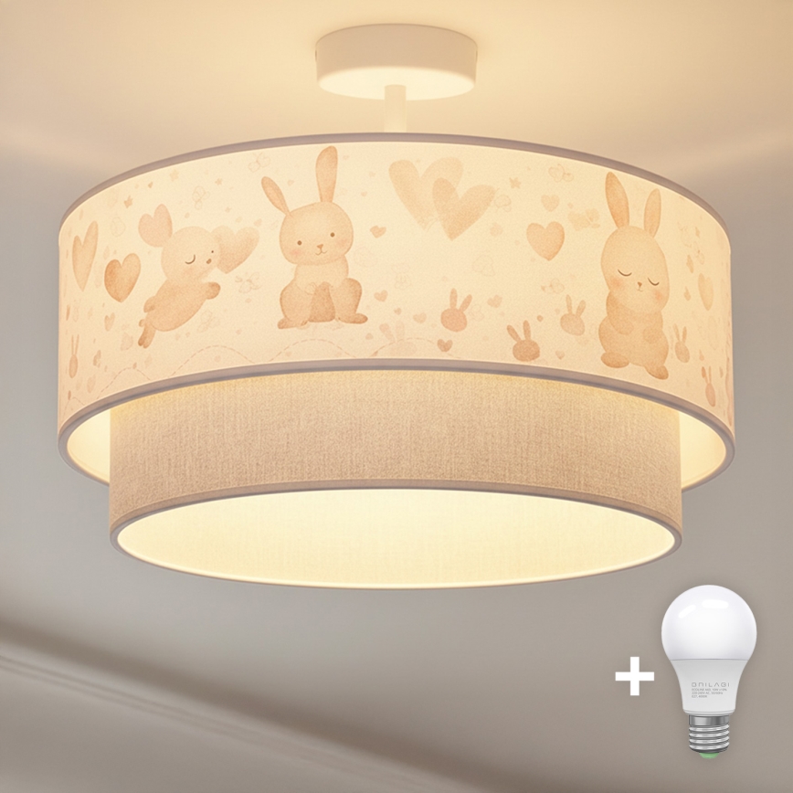 • Brilagi - LED-Aufbauleuchte für Kinder BOBO 1xE27/10W/230V Ø 40 cm creme/rosa mit Hasenmotiv