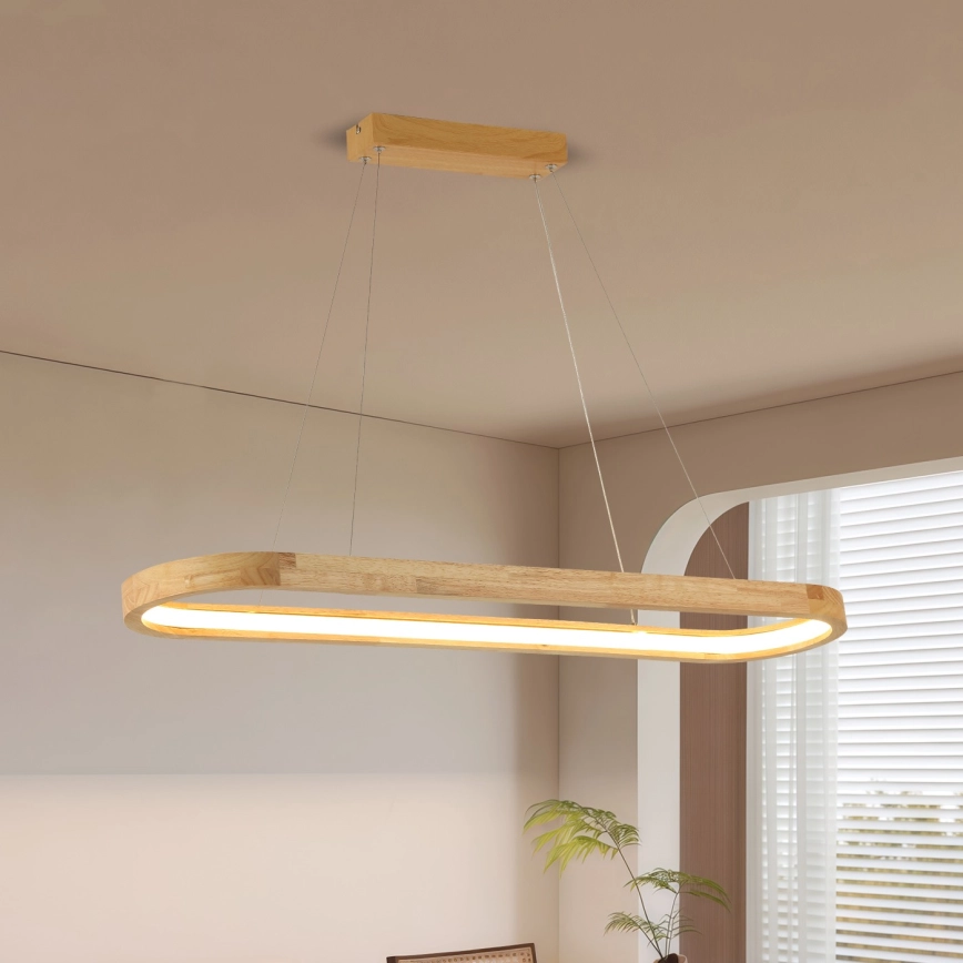 Brilagi - LED-Pendelleuchte UMEA WOOD an Stahlseil, LED/40W/230V, 90x22 cm, Holz