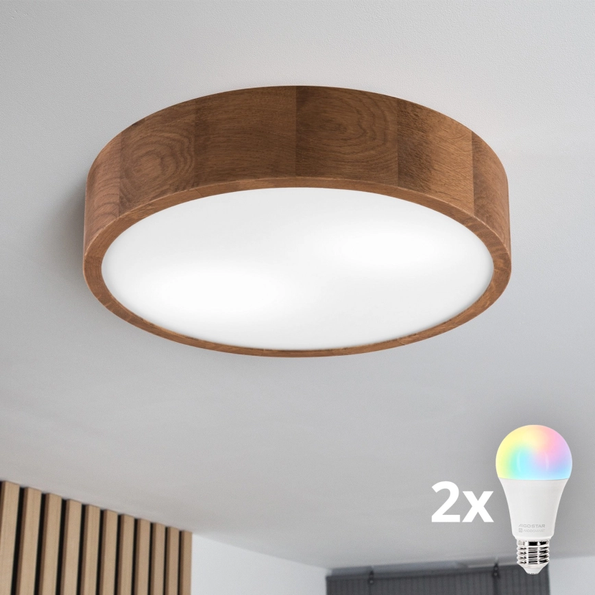 Brilagi - LED RGBW dimmbare Deckenleuchte CARVALHO 2xE27/15W/230V 2700-6500K Wi-Fi Eiche Ø 37,5 cm