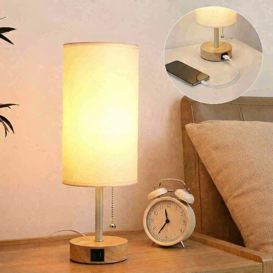 Brilagi - Tischlampe mit USB-Anschluss TABLON 1xE27/25W/230V Eiche/Beige/Creme