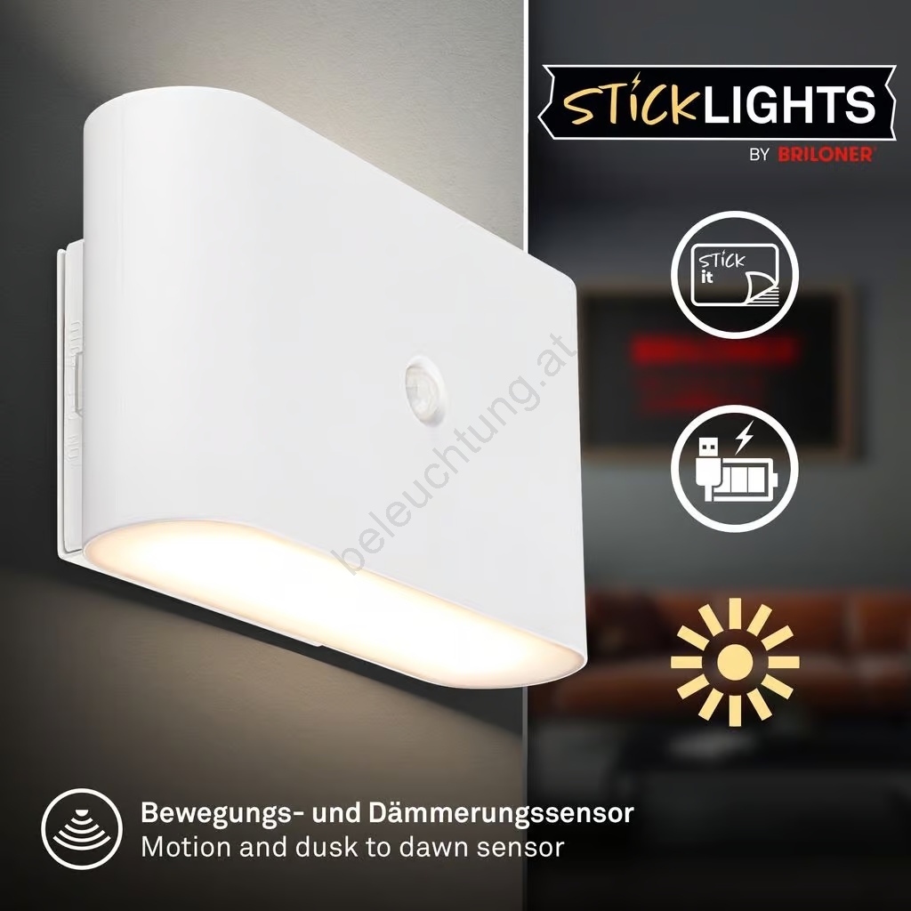 • Briloner 3878016 - Wiederaufladbare LED-Wandleuchte mit Bewegungs- und Dämmerungssensor CHAT LED/3W/5V 2000 mAh weiß