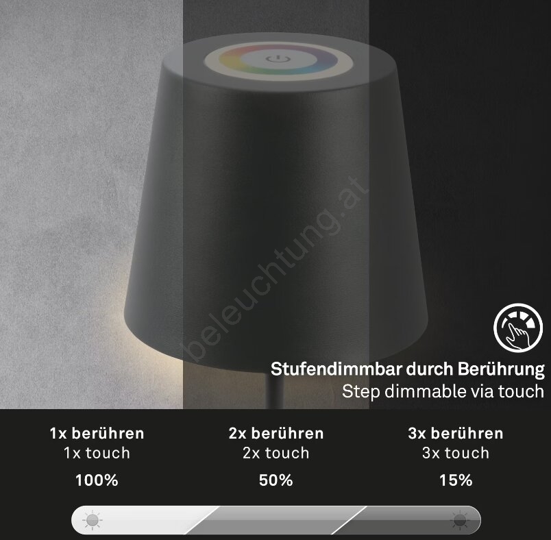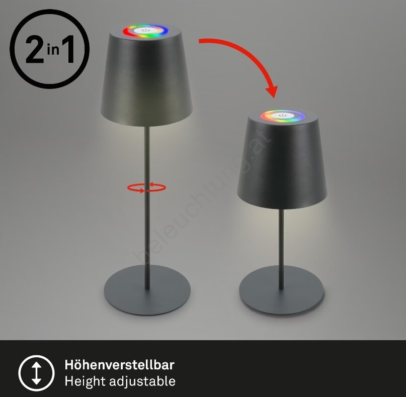 • Briloner 7507015 - LED RGB, dimmbar, wiederaufladbare Außen-Tischlampe 2-in-1 LED/2,5W/5V IP44 1200 mAh Anthrazit
