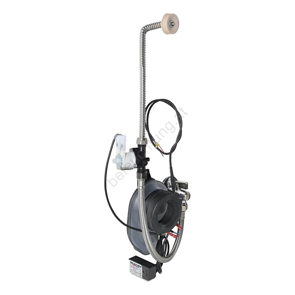 Steuereinheit, elektromagnetisches Ventil, Batteriefach und Anschlusskomponenten.