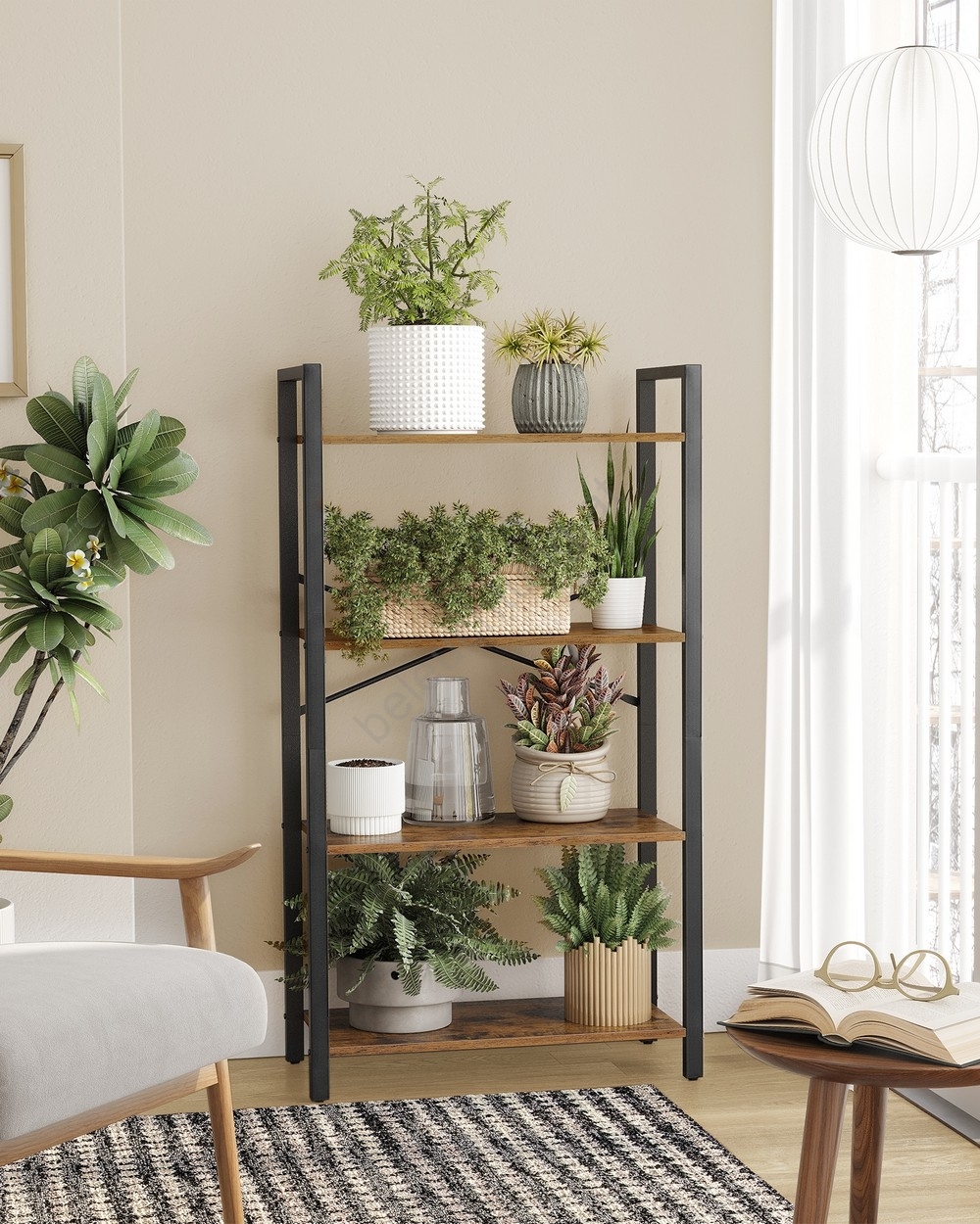 • Dank 4 Regalböden (jeweils mit einer Tragkraft von bis zu 10 kg) darauf können Sie Bücher, Figuren, Dekorationen und weitere Ausstellungsstücke platzieren.