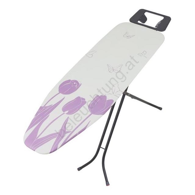 • Das Bügelbrett TORO NERO mit lila Tulpenmuster ist ein praktischer Helfer für das tägliche Bügeln.