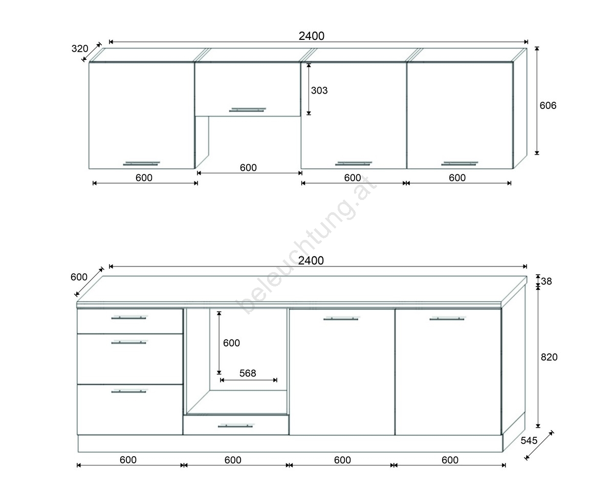 • Im Lieferumfang sind keine Elektrogeräte, keine Spüle und keine Küchenarmatur enthalten.