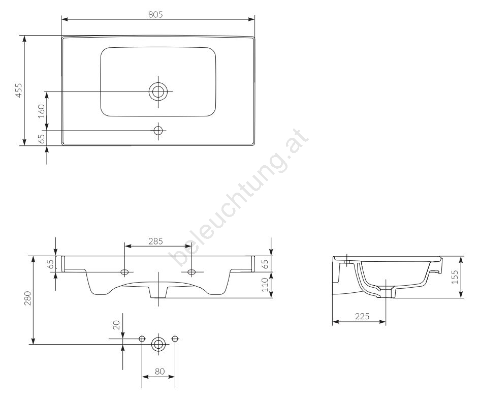 • Waschbeckenarmatur und Ablauf sind nicht im Lieferumfang enthalten.