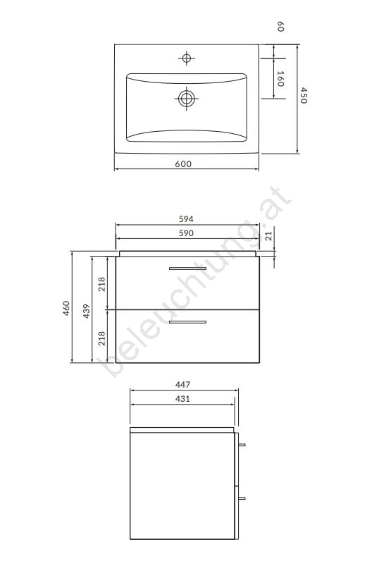 • Das Keramikwaschbecken hat eine klassische rechteckige Form mit Hahnloch und Überlauf.