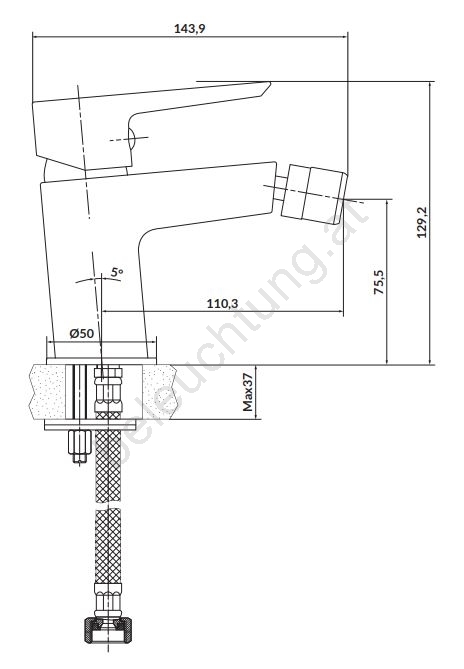 • Der Wasserhahn ist außerdem mit flexiblen Eco EPDM Anschluss-Schläuchen von 40 cm Länge ausgestattet.