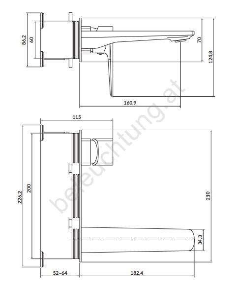 • Wandmontierte Waschtischarmatur für Unterputzinstallation.