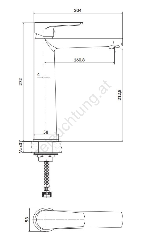• Anschlussschläuche mit einer Länge von 40 cm sind im Lieferumfang enthalten.