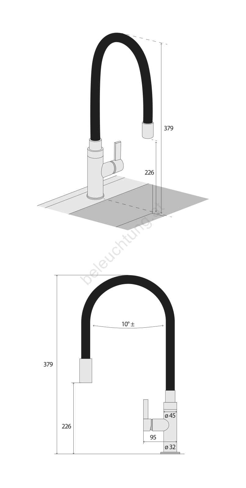• Höhe der Armatur: 379 mm.