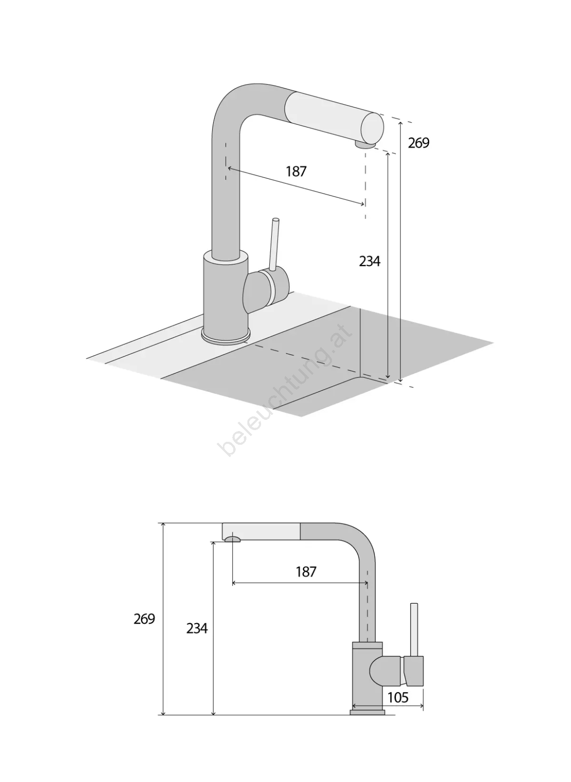 • Art der Armatur: Spültischarmatur, Einhebelmischer.