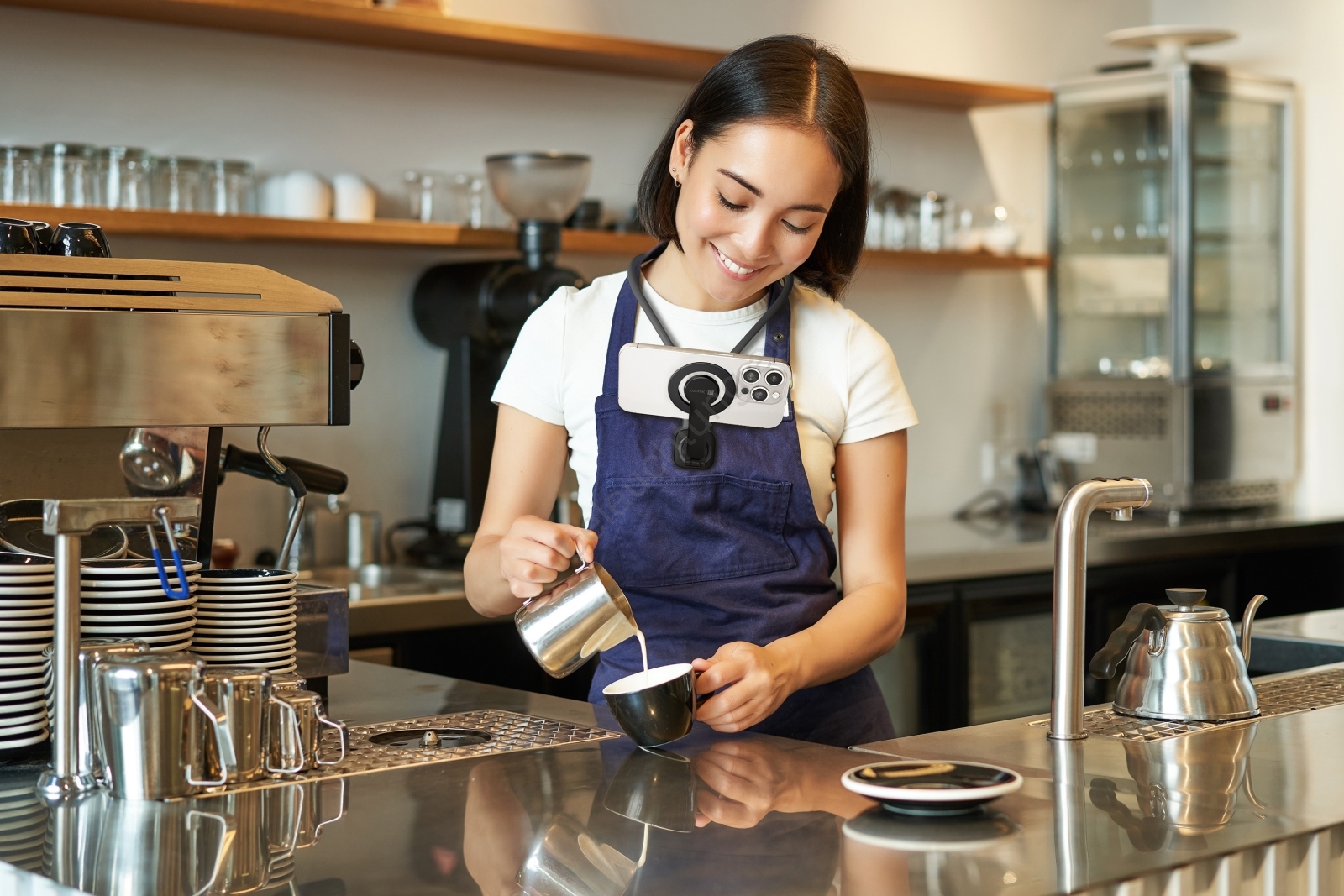• Magnetischer MagSafe-Halter für das Telefon zum Tragen am Hals.