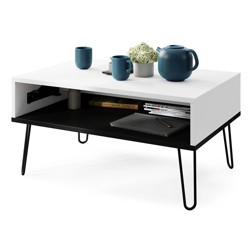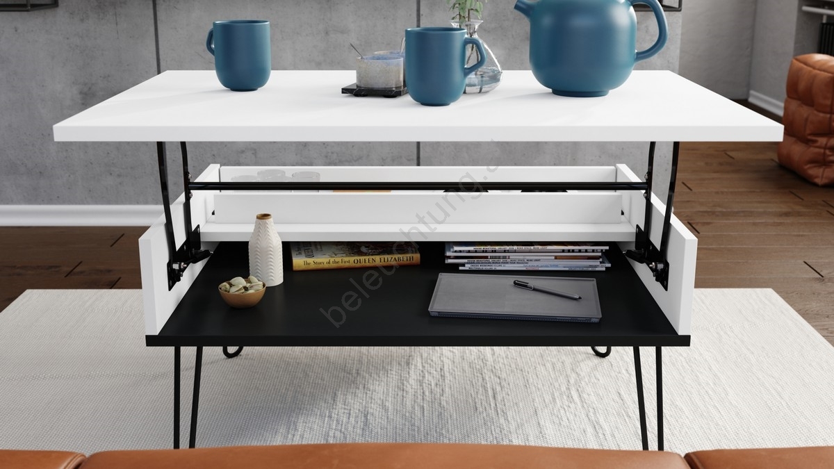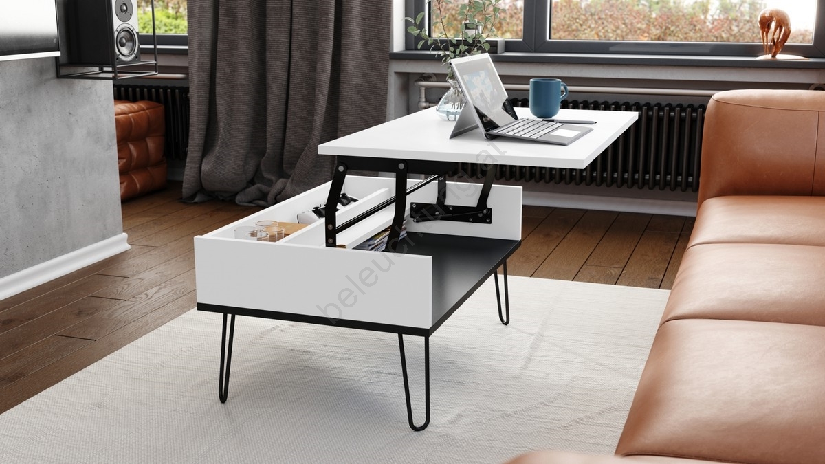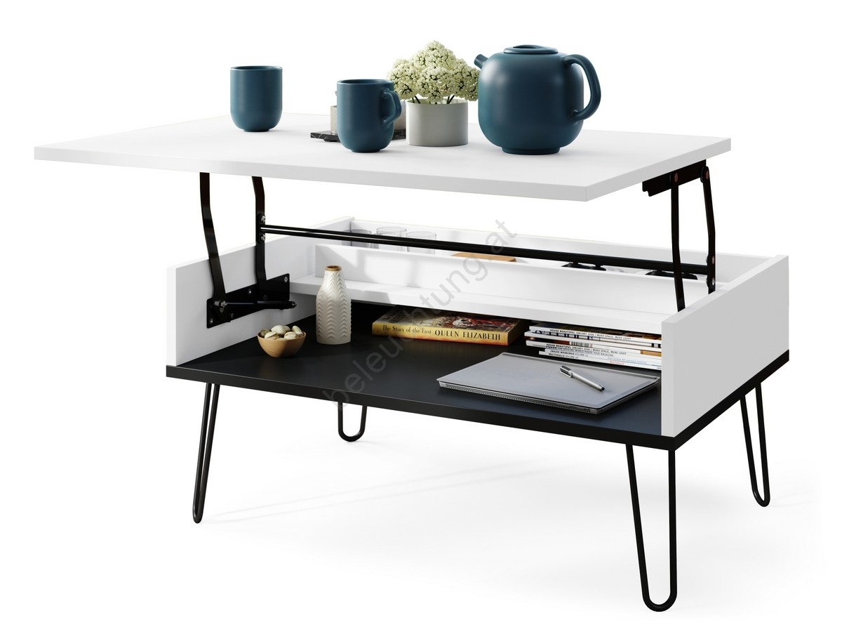 Couchtisch mit Hebefunktion und Ablage HALIJA, weiß/schwarz