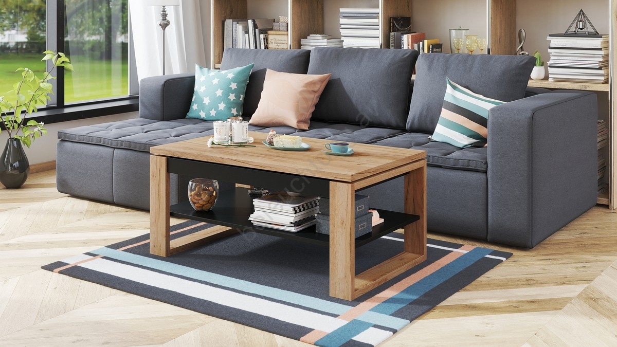 • Couchtisch mit Hubfunktion und Ablage NEA Craft-Eiche/schwarz