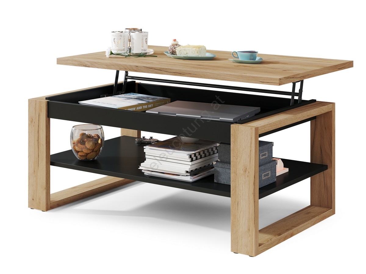 Couchtisch mit Hubfunktion und Ablage NEA Craft-Eiche/schwarz