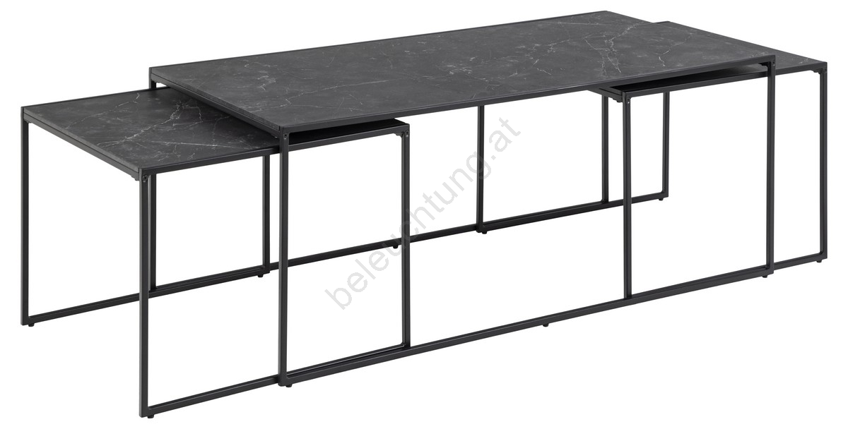 • Dank klarer Linien, Marmoroptik und der schwarzen Pulverbeschichtung passt das Couchtisch-Set in nahezu jedes Wohnzimmer.