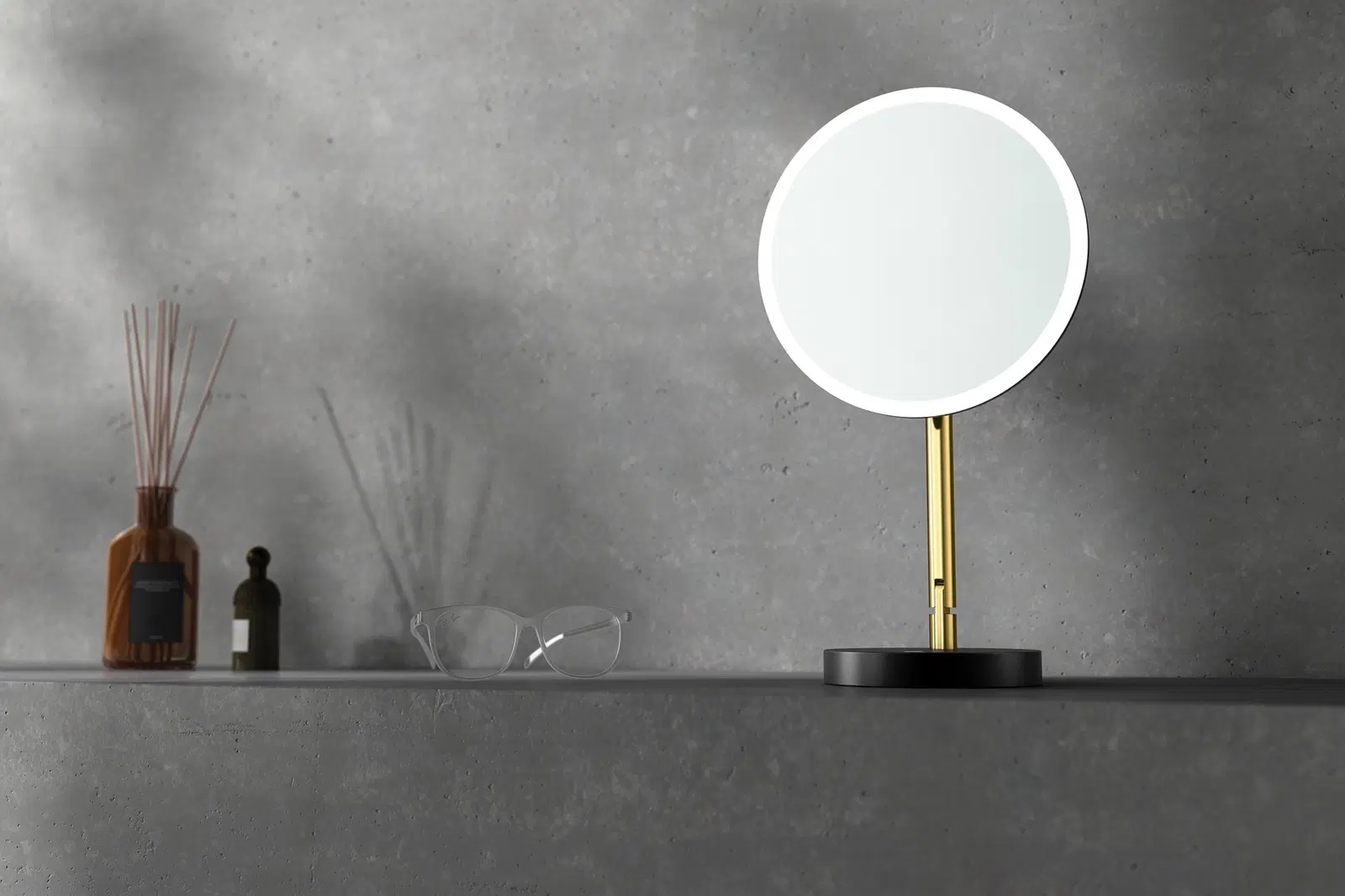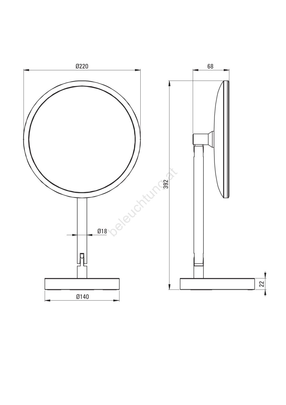 • Der Spiegel mit gleichmäßig über den Rand verteilter LED-Beleuchtung sorgt für eine präzise Ausleuchtung des Gesichts.