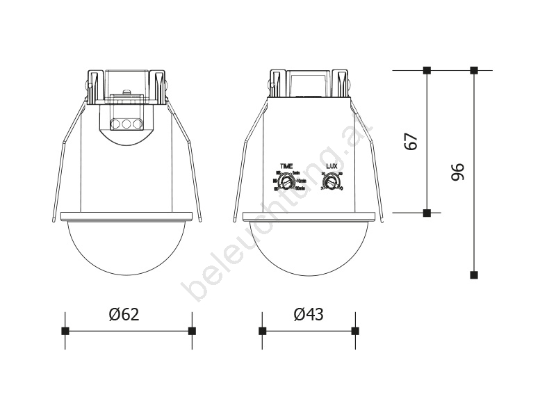 • Maximale Belastung des Sensors für Glühlampen: max. 1200W.