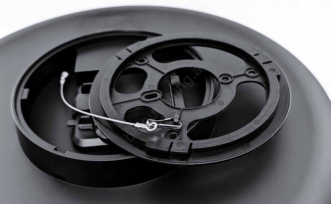 • GXLS459 – Deckenabhängesystem mit Baldachin in Schwarz und integrierter schraubenloser Klemme. Maximale Gesamtlänge von der Decke bis zur Unterkante des Leuchtmittels beträgt 155 cm (siehe verwandte Produkte).