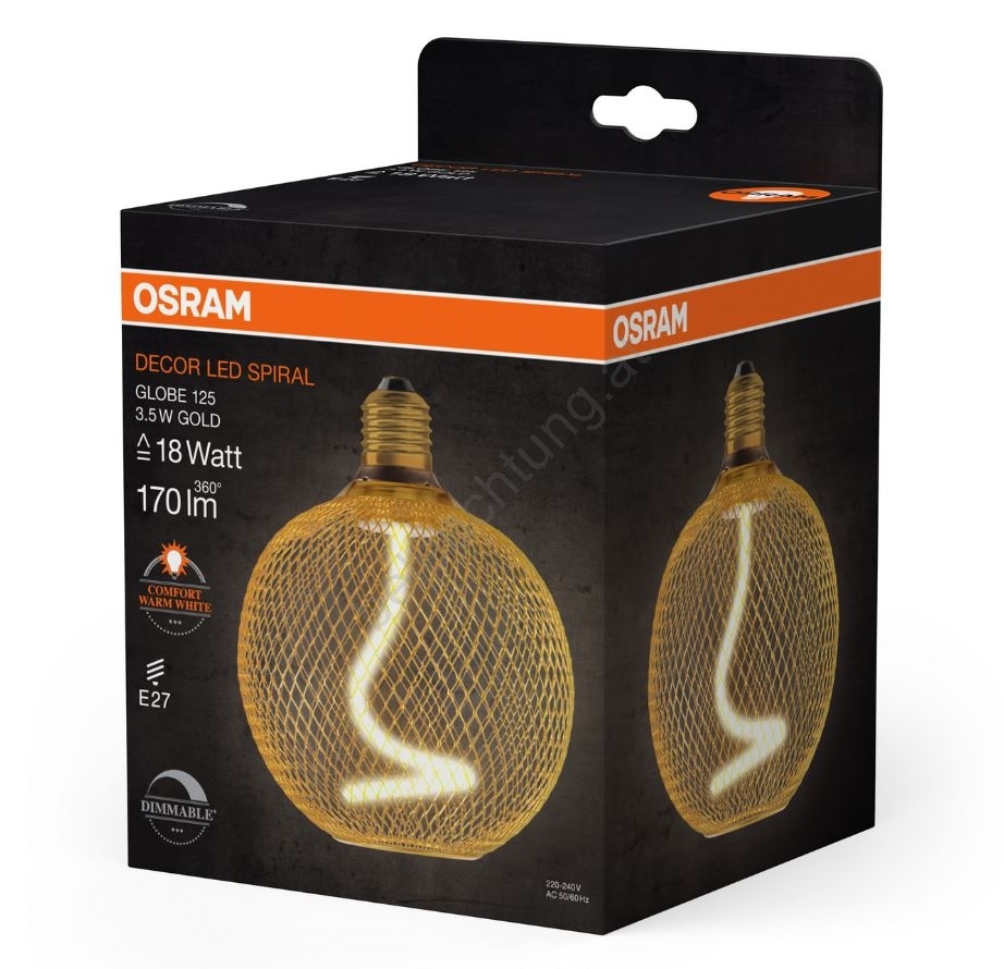 Dimmbare LED-Glühlampe DECOR FILAMENT G125 E27/3,5W/230V 1800K golden - Osram