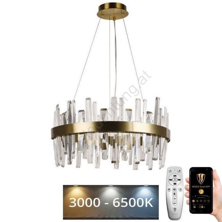 LED dimmbarer Kristall-Pendelleuchter an Kabel LED/80W/230V 3000-6500K gold + Fernbedienung