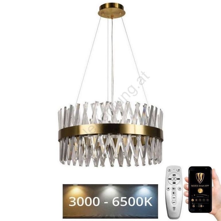 LED dimmbarer Kristall-Pendelleuchter an Kabel LED/80W/230V 3000-6500K gold + Fernbedienung