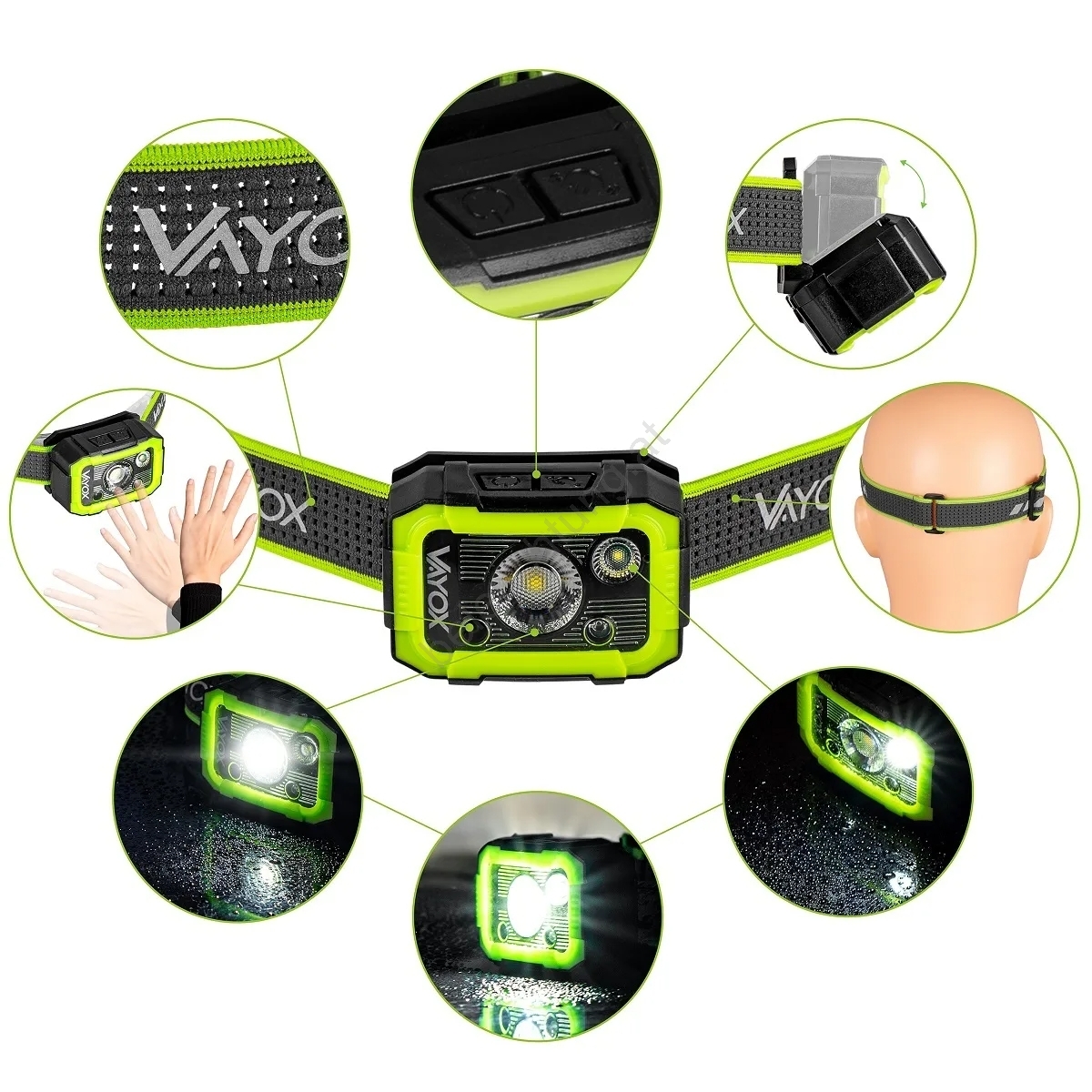• Wiederaufladbare LED-Stirnlampe mit Bewegungssensor.