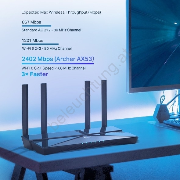 • Gigabit-Geschwindigkeiten der Wi-Fi-6-Generation - 2.402 Mbit/s im 5-GHz-Band und 574 Mbit/s im 2,4-GHz-Band sorgen für flüssigeres Streaming und schnellere Downloads.