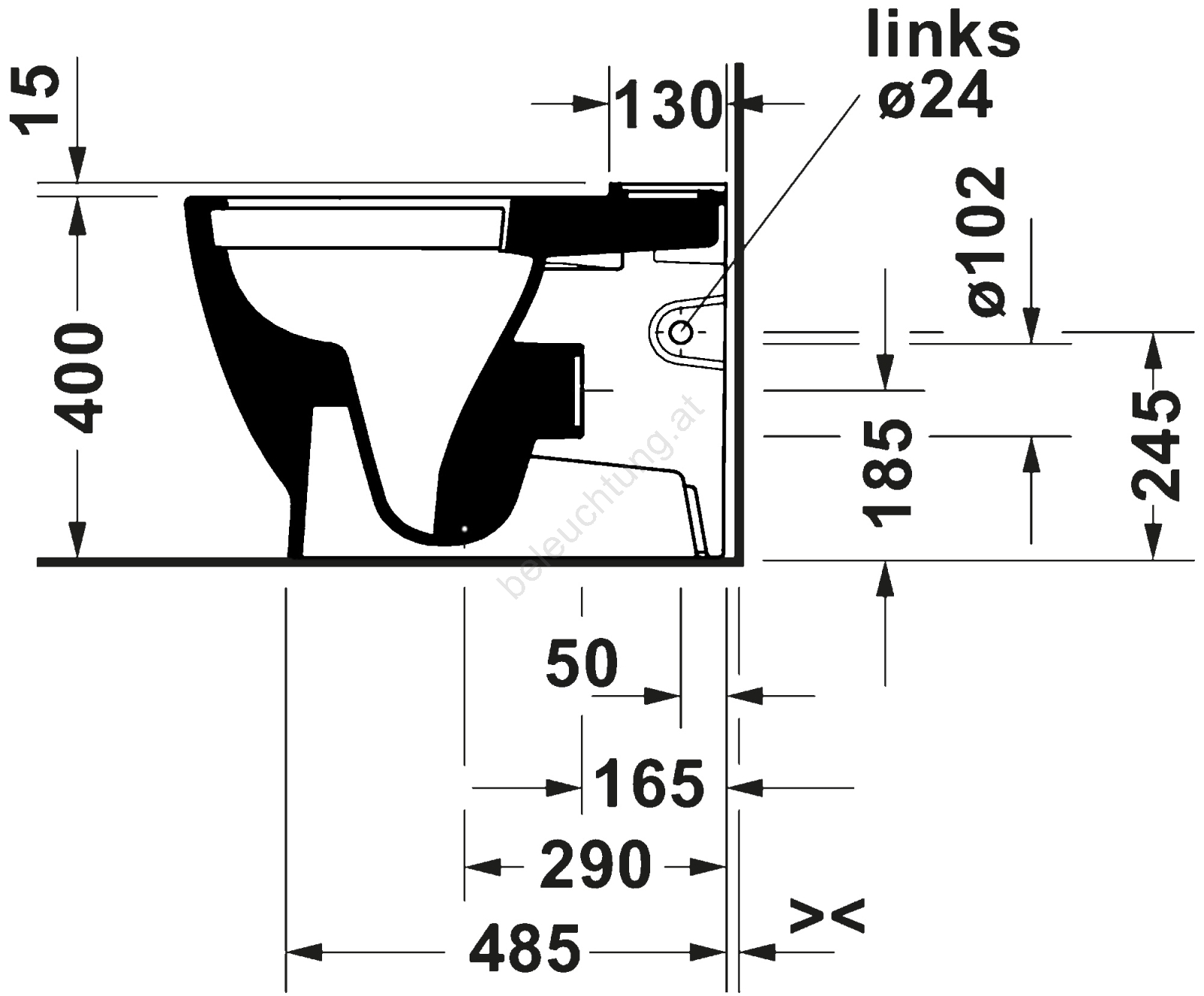 • Das Stand-WC ist als Kombi-WC konzipiert und für den Anschluss an einen Spülkasten vorgesehen, der separat bestellt werden muss.