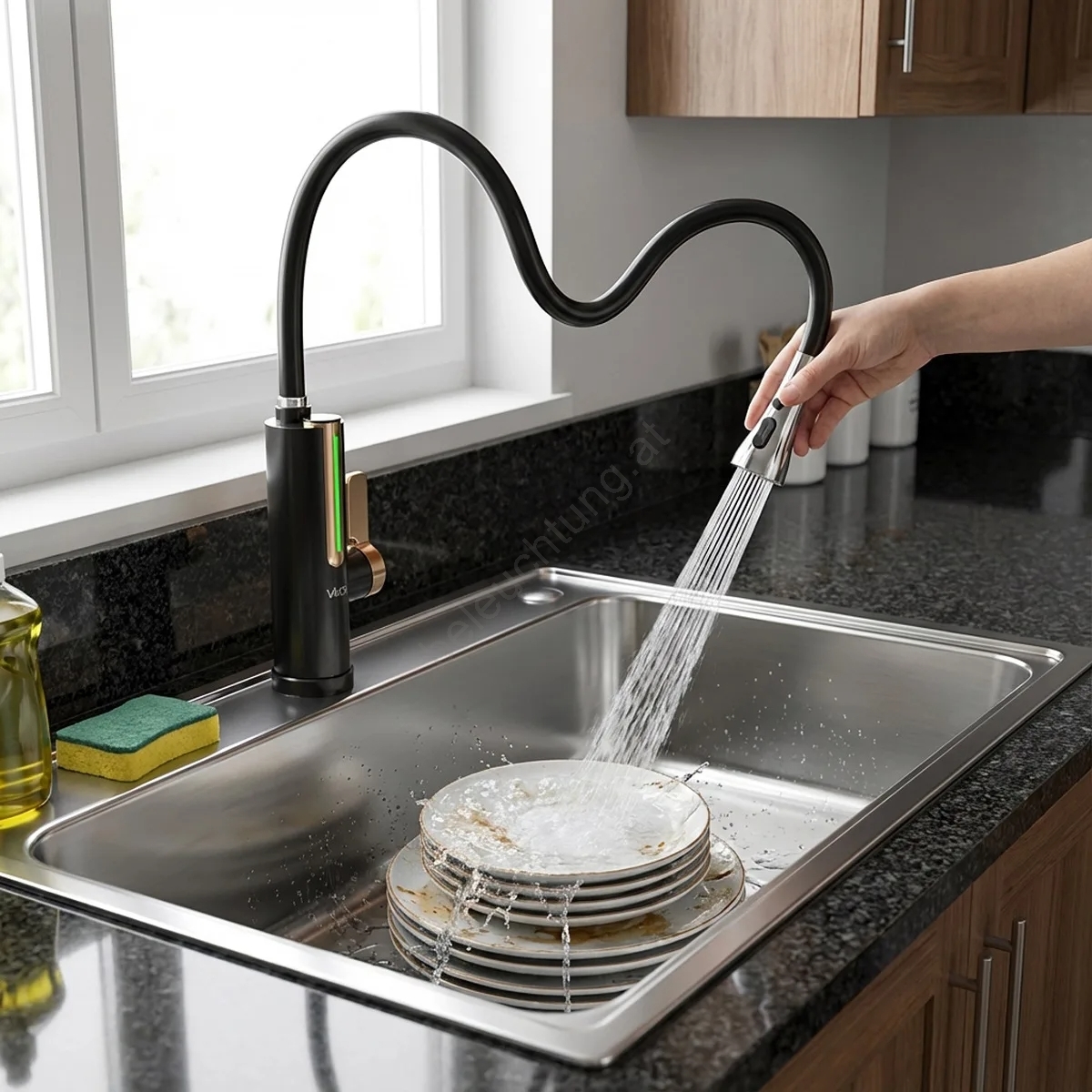 • Liefert nahezu sofort einen heißen Wasserstrahl bis zu 50 °C.