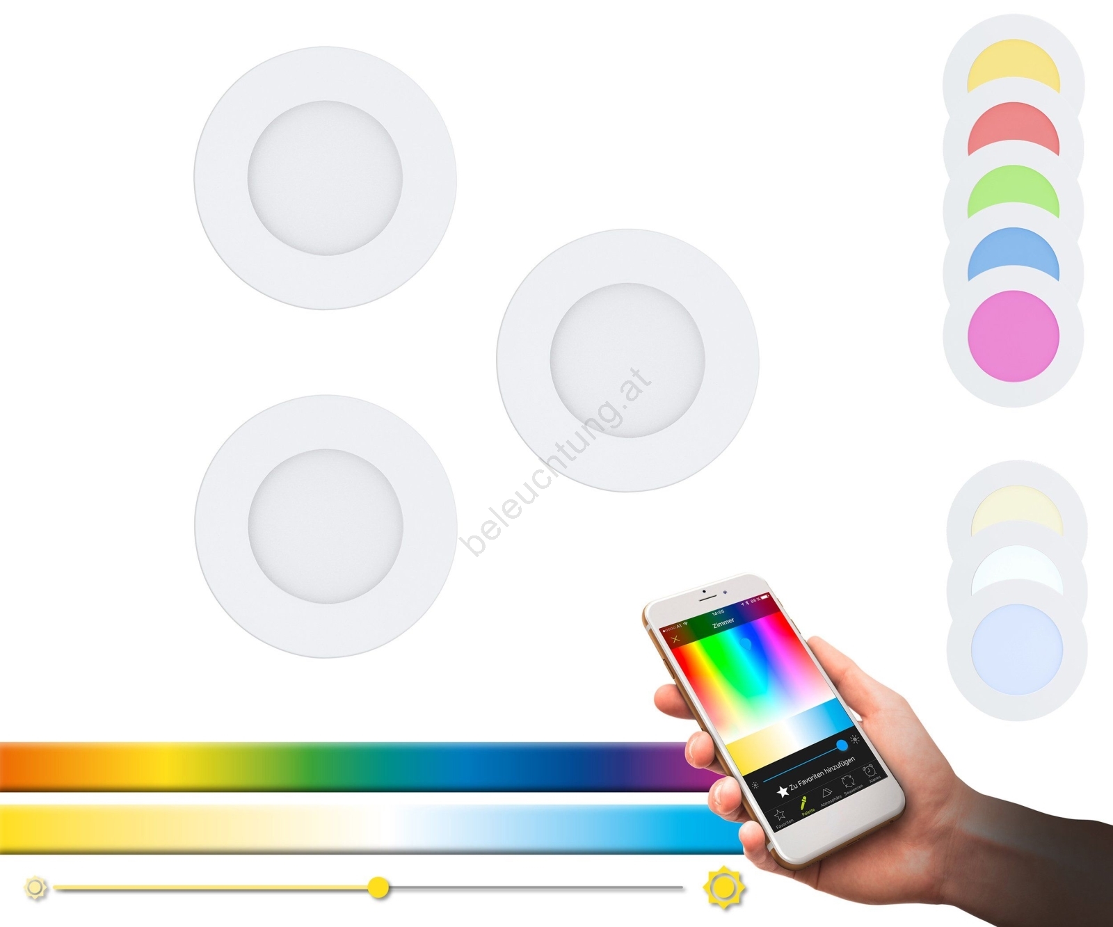 • Eglo - 3er-Set RGB-dimmbare Einbauleuchten FUEVA-C 1x LED/3W/230V Ø 8,5 cm