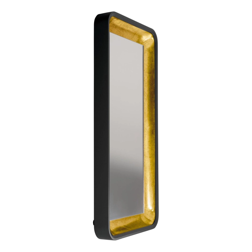 • Design-Wandspiegel mit schwarz-goldener Einfassung.
