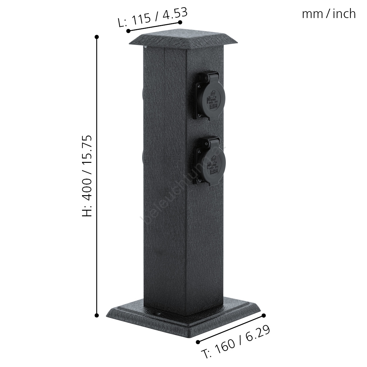 EGLO - Outdoor-Gartensäule mit Steckdosen SCHUKO IP44