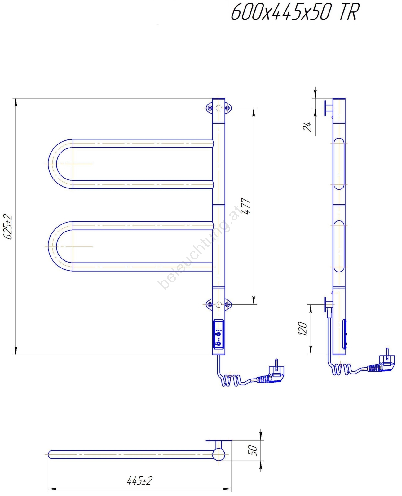 Elektrischer drehbarer Handtuchwärmer TRISTAR 75W/230V 62,5x44,5 cm IP44 Edelstahl/schwarz