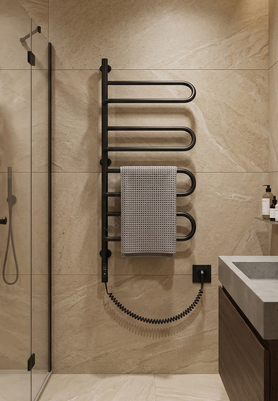 • Elektrischer Handtuchwärmer für das Badezimmer mit Thermostat.