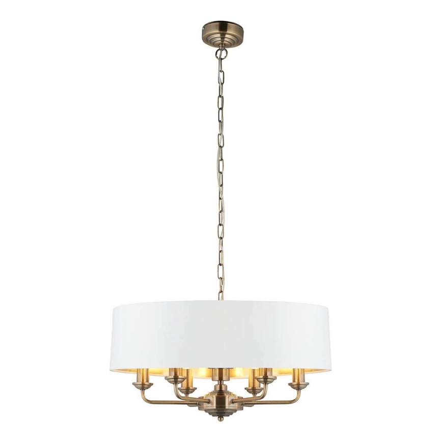 Endon 98933 - Hängeleuchte an Kette HIGHCLERE 6xE14/40W/230V weiß/Messing d 55 cm