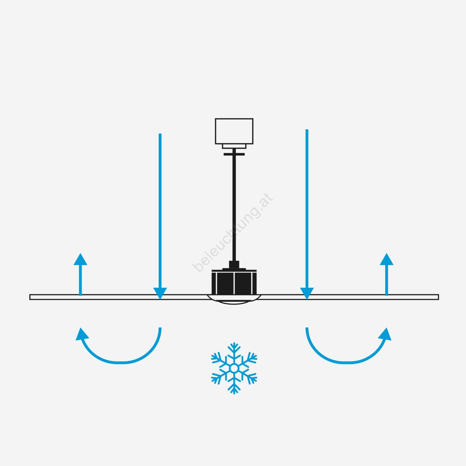 • Dieser Ventilator besitzt eine Sommer-Winter-Umlauffunktion, sodass er auch im Winter genutzt werden kann (Einsparung der Heizkosten im Winter bis zu 20 %).
